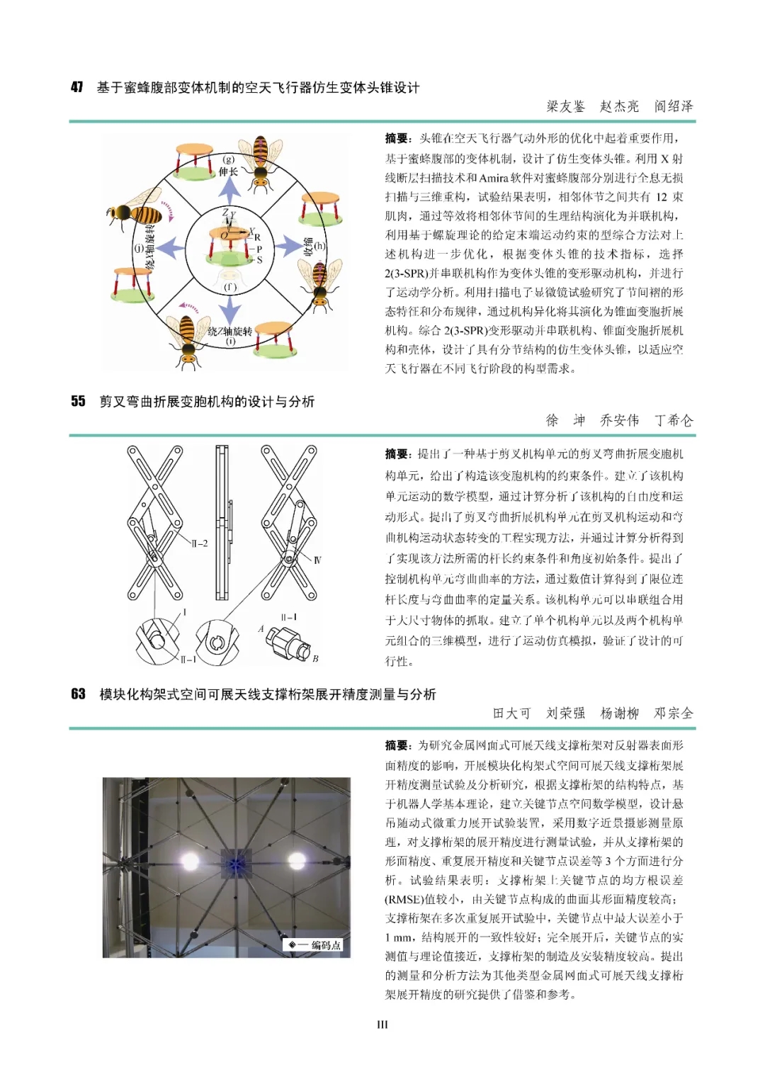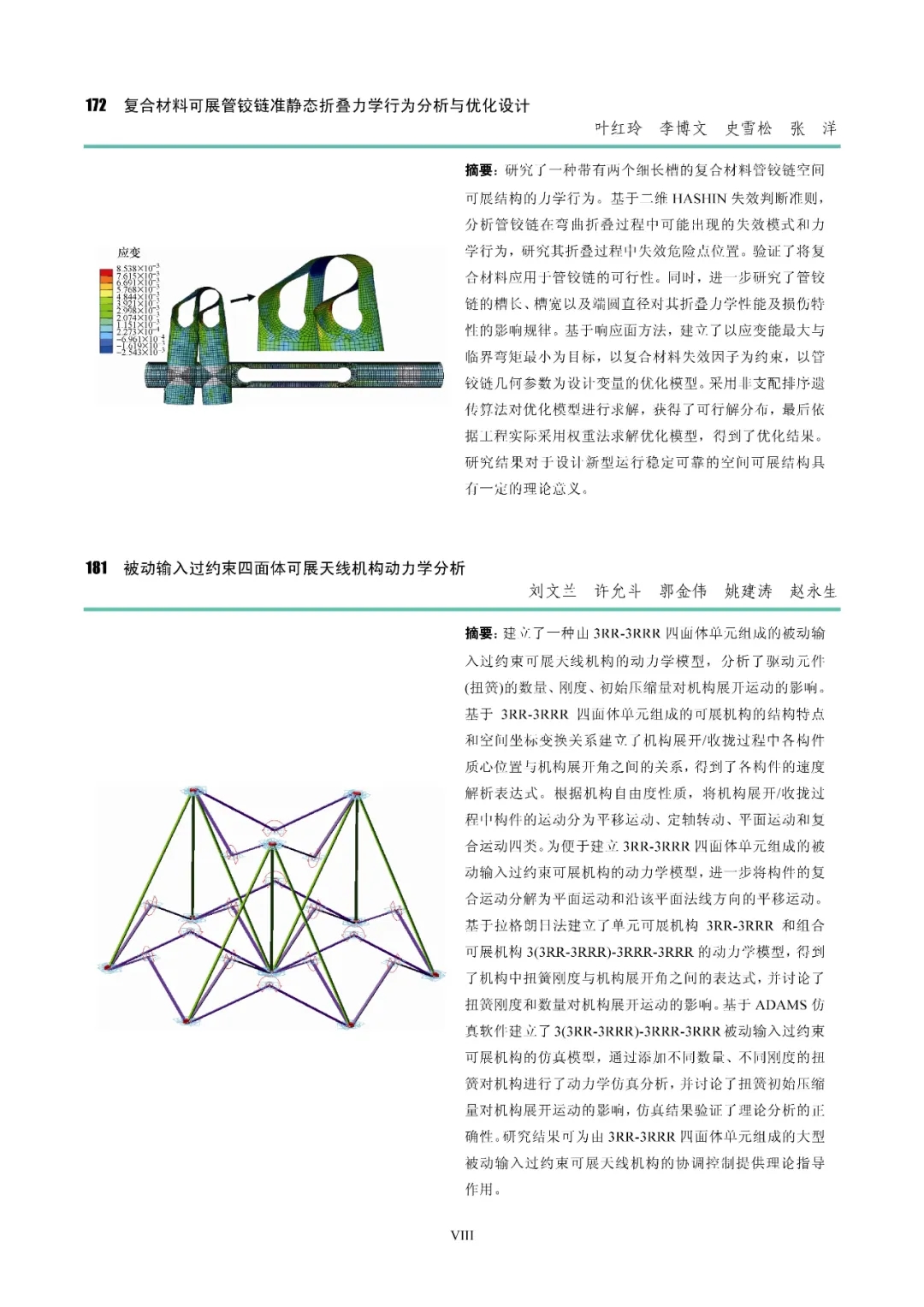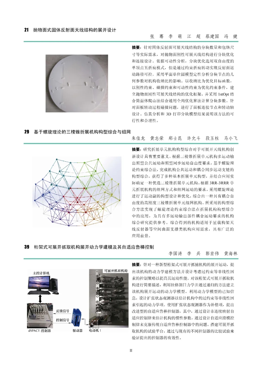空间可展机构是机构学领域新的学术方向,近年来发展十分迅猛,在大型空间天线、太阳翼、太阳帆、遮光罩等方面应用越来越广泛,随着空间可展机构不断大型化,围绕折展机构设计、动力学分析、驱动控制、测量与实验等方面的研究已成为世界学术前沿和研究热点,相关研究对于促进机构学学术创新、提升我国航天科技水平具有十分重要意义。
